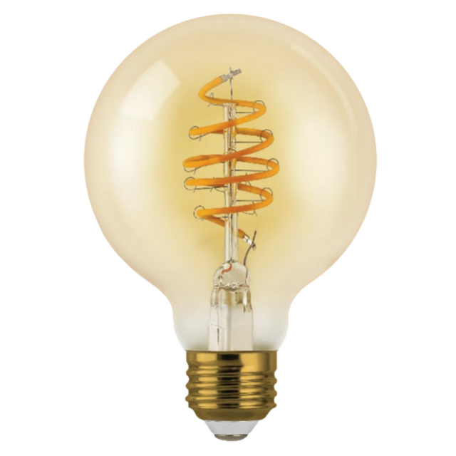 LED 4.5w Globe Bulb G25 - E26 Base Amber Tint Spiral Filament Style 250lm (2200K) 120v